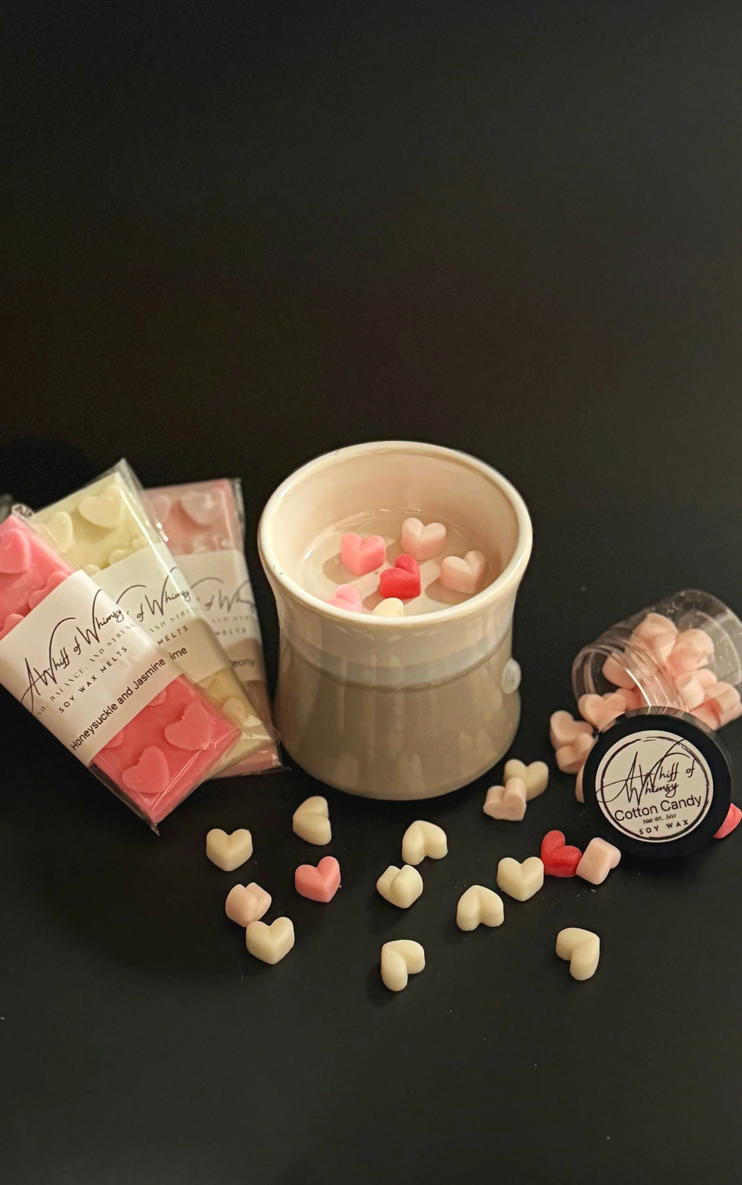 A Whiff of Whimsy is a handcrafted wax melt studio focused on simplicity, creativity, and scent personalization. With over 150 fragrances to choose from, you can mix and match our tiny wax hearts to create your own signature blend—one that fits your space, your mood, and your moment.